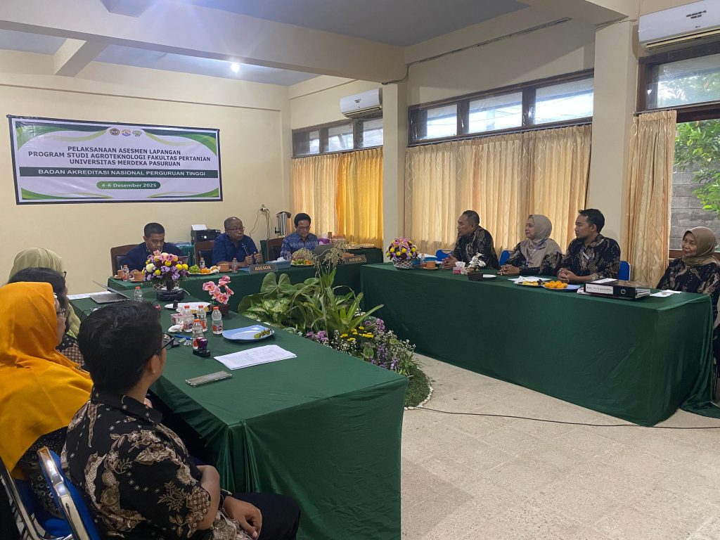 Universitas Merdeka Pasuruan menyambut baik kegiatan ini sebagai bagian dari komitmen dalam meningkatkan kualitas penyelenggaraan pendidikan tinggi. Melalui Asesmen Lapangan ini, diharapkan Program Studi S1 Agroteknologi memperoleh umpan balik konstruktif untuk pengembangan program studi ke arah yang lebih baik.